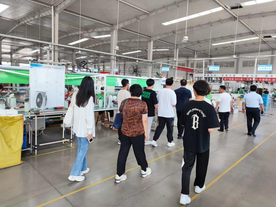 7月19日,调研团先行来到了大胡子健身器材公司。宁津县有2000余家健身器材企业,占国内商用健身器材70%的份额,产品远销170多个国家和地区。大胡子健身器材公司在当地同类公司中规模最大。负责人带领队员们进行了各种健身器材体验,让人印象最深的不只有门类繁多的器材,还有大胆的自主创新。就像公司董事长周月明所说的“大胆去想,大胆去做,了解市场的需求,做大需求的市场,努力让创新成为企业的特点,让合作共赢与高品质成为招牌”。他们用科技创新去带动发展,如遇到焊接车间的除尘机噪音过大、焊烟难分离的技术难题,自主研发了全套设备,有效解决了生产过程中的二次污染,极大改善了生产环境。“如今最大的瓶颈是人”,周董如是说,“企业欢迎更多创新型青年人才的加入,放手去想去干,提升企业的人才技术储备。希望利用国内外优秀技术与自动化产业链相结合的优势,进一步做强做大。”