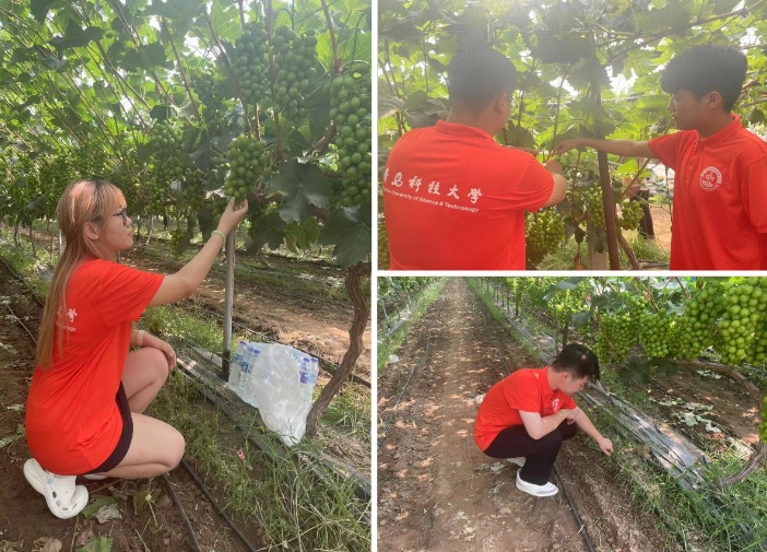 7月24日,调研团来到达善村葡萄种植大棚参观学习。调研团成员与务农人员展开热烈讨论,深入了解了葡萄大棚在提高经济效益、减少病虫害、提高葡萄品质等方面的重要作用。据了解,该务农人员在首次启用葡萄大棚的基础上,创新性种植葡萄新品种-阳光玫瑰,年收益净增10余万元,生活幸福度极大提升。团队成员在与务农人员交流后,协助其进行修剪,除草等相关工作,切身体验到了“面朝黄土背朝天”的辛苦与不易,对于乡村振兴战略的实施有了更深的理解。