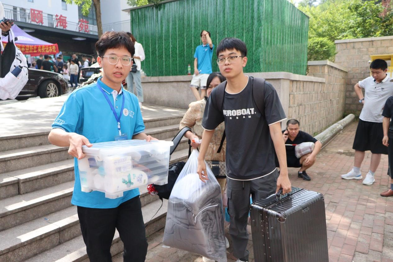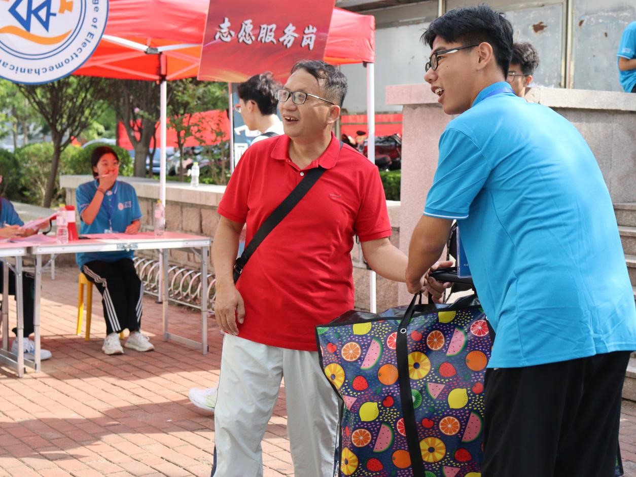 岗位众多,科学分配效率高。学院坚持守正创新,分工协同,热心服务,共设置科创展示工作、学院引导服务、校园文化宣传展示、党员先锋岗等职责明确的志愿者服务岗,为新生现场引导答疑。“同学你好,请问有什么需要帮助?”“来,把材料装好再走,别路上弄丢了……”“先别走,快来拿迎新大礼包……”“这边有照片墙,快来拍张照纪念一下”……学院的迎新志愿者奔走在校园的各个角落,为新生指引方向,协助新生搬运行李,帮助新生完成报到手续,全面推动志愿服务实现新提升。每一名志愿者用饱满的热情、踏实的行动和对志愿服务精神的坚守彰显了机电学子的青春风采,践行了新时代大学生的责任担当,用实际行动讲述着机电“志愿服务第一课”。