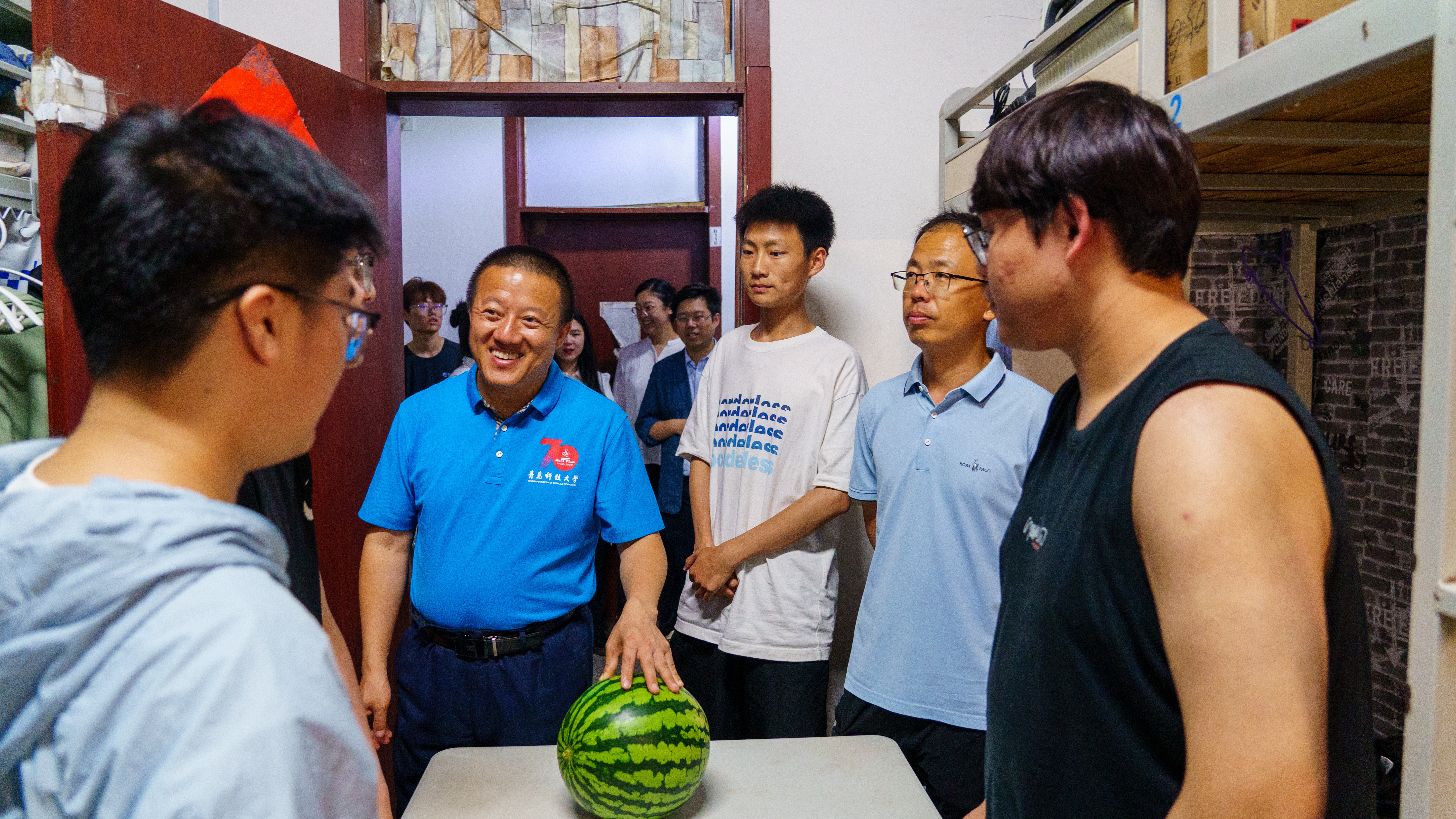 学院领导走访毕业生宿舍:赠瓜送祝福
