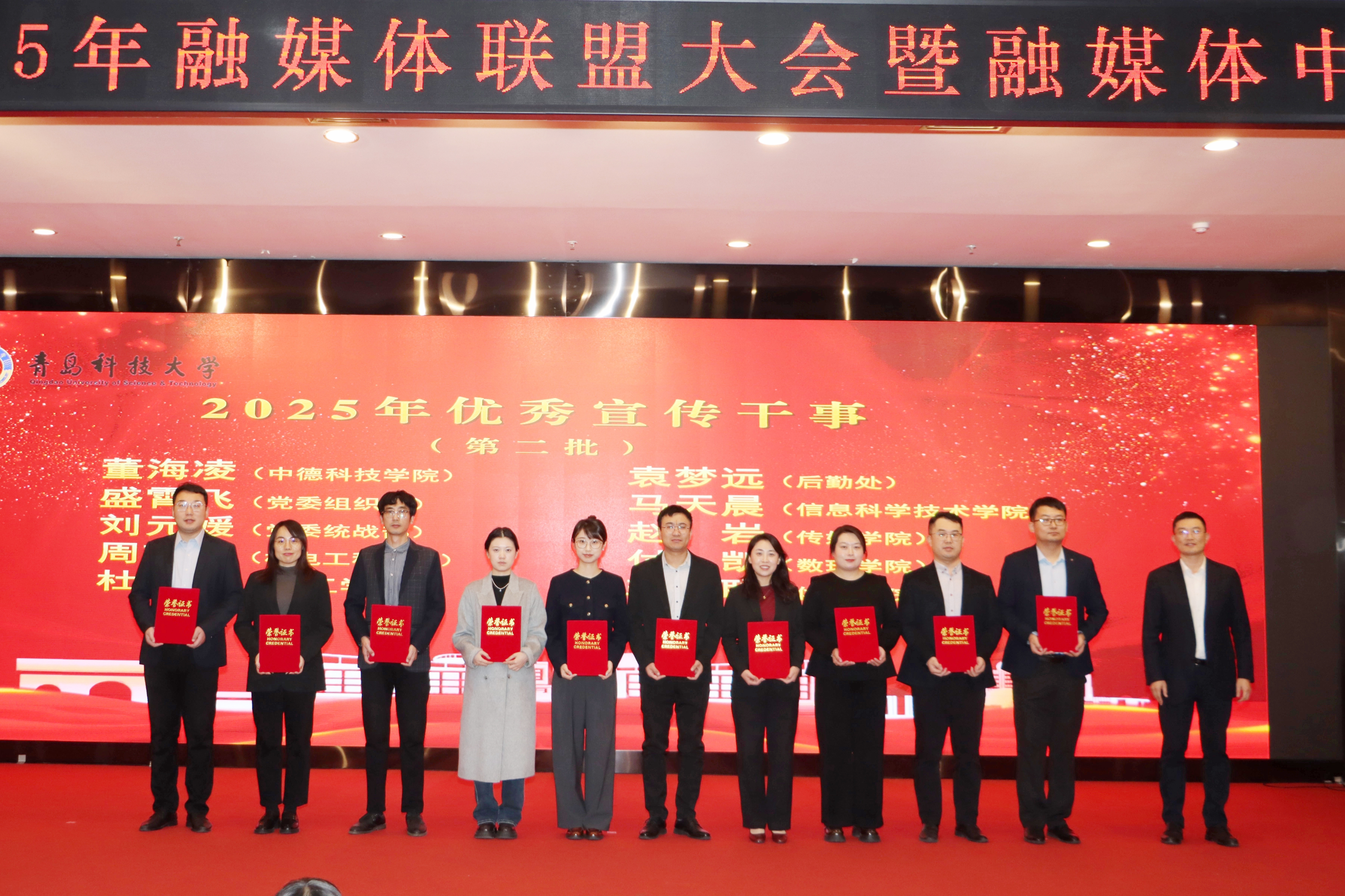 365英国上市获得“2025年新闻宣传先进单位”荣誉称号;学院微信公众平台“青科机电发布”被评为“2025年优秀微信公众平台”;学院周韫涵老师获得“英国上市公司官网365优秀宣传干事”称号。
