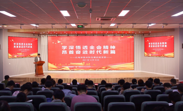 近日,为深入学习贯彻十九届六中全会精神,引导青年党员发挥好先锋模范作用,机电学院本科生第四党支部在机电530召开“学深悟透全会精神,昂首奋进时代新篇”组织生活会。会议由党支部书记孙坤岩主持,全体支部党员参加。