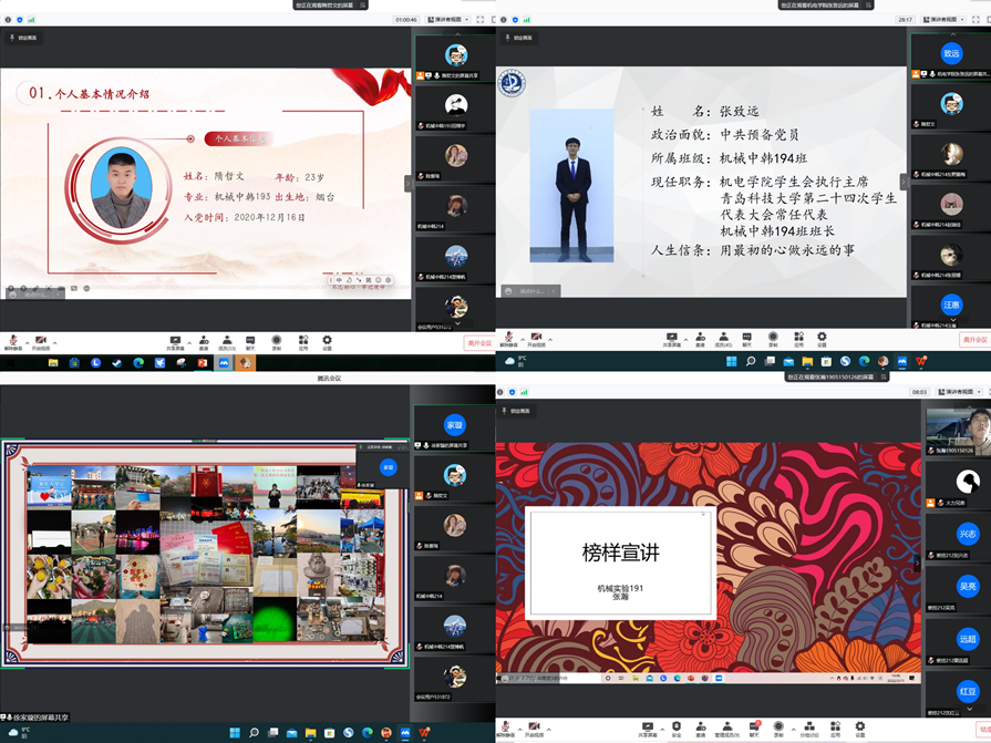 习近平总书记寄语新时代中国青年,中国青年是有远大理想抱负的青年!中国青年是有深厚家国情怀的青年!中国青年始终是实现中华民族伟大复兴的先锋力量!机电学院本科生第一党支部开展“薪火相传,不负韶华”线上主题党日活动,支部党员同志们结合自身经历从各个方面给学弟学妹们说明如何去丰富大学生活。