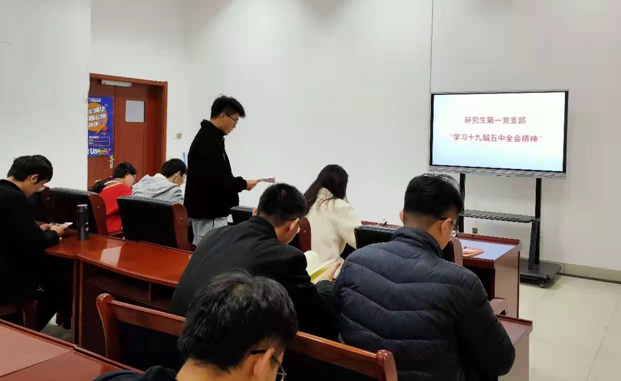 11月17日14时,机电学院研究生第一党支部在机电楼529会议室开展“十九届五中全会精神”学习交流。