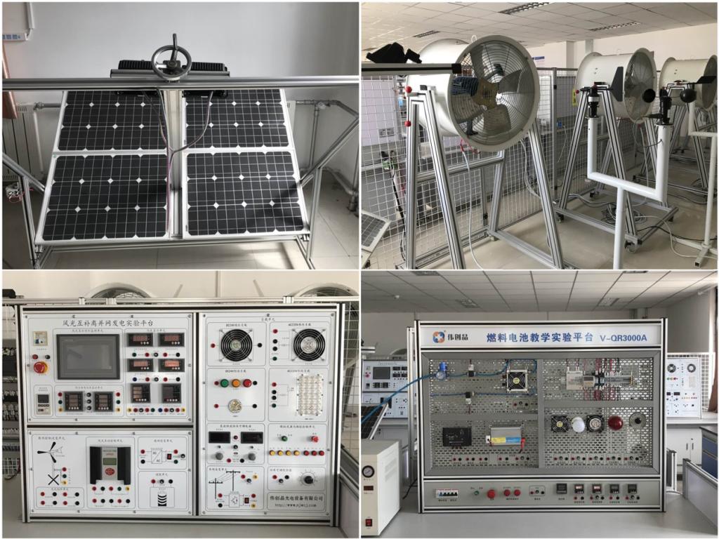 (3)高度重视实验实践能力的培养和工程专业素养的提升,构建“实验教学—实习实训—毕业设计—课外科技创新—社会实践”五元结合的实践教学体系。附图中是新能源科学与工程专业教学实验室,该实验室可开设涉及风能、太阳能、氢能、生物质能等新能源领域的10余项专业教学实验。
