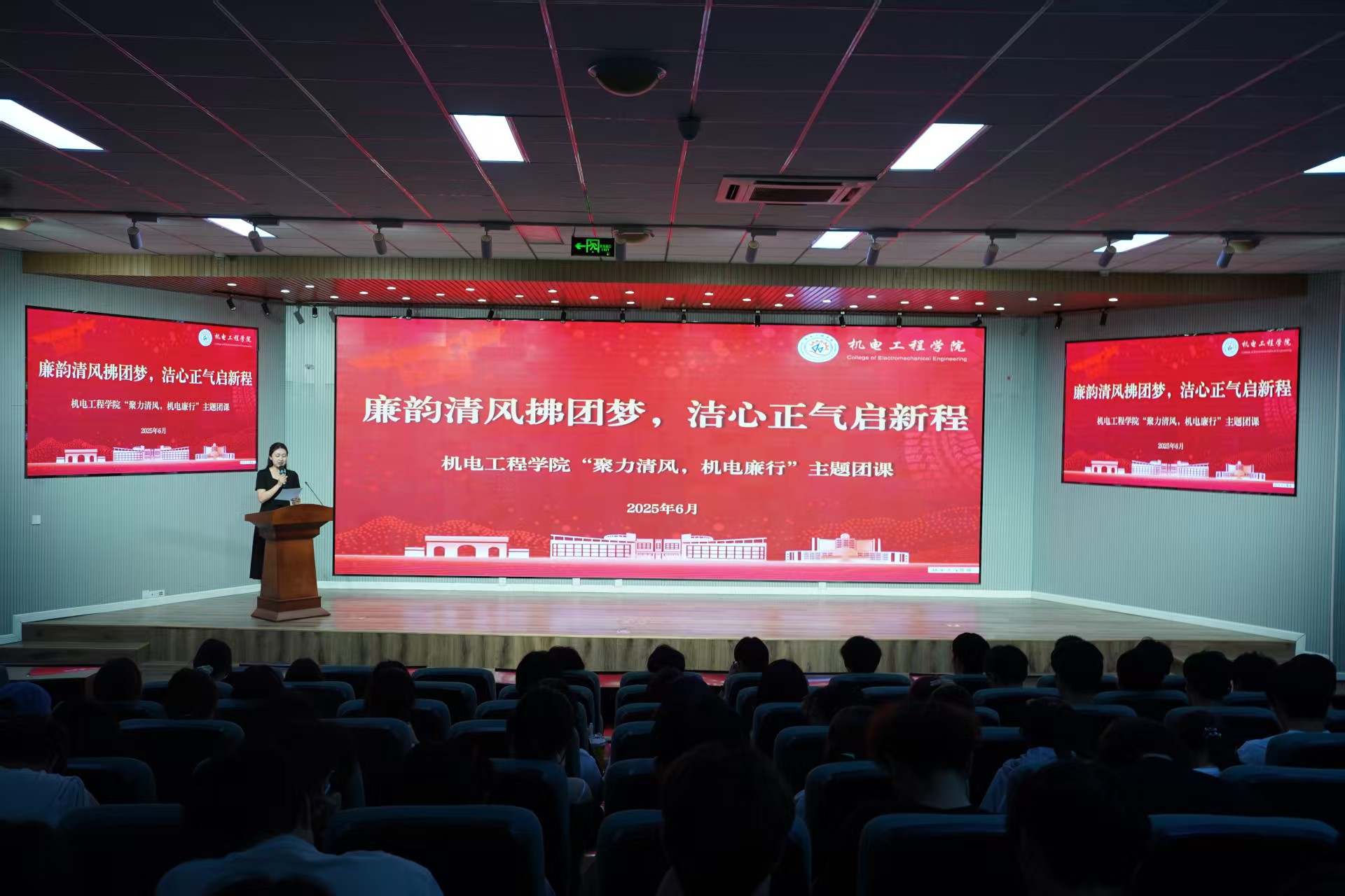 团课伊始,全体同学观看“青年清廉”主题视频。视频以生动画面与详实案例,从历史传承、时代意义等角度诠释廉洁文化内涵。在廉洁故事分享环节中,学生代表以小见大,展现廉洁精神的传承。团课的最后,团支书们结合校园生活,以“知-行-心”三维视角分享感悟,呼吁大家坚守诚信,杜绝作弊、抄袭等行为,争做廉洁文化的传播者与践行者。