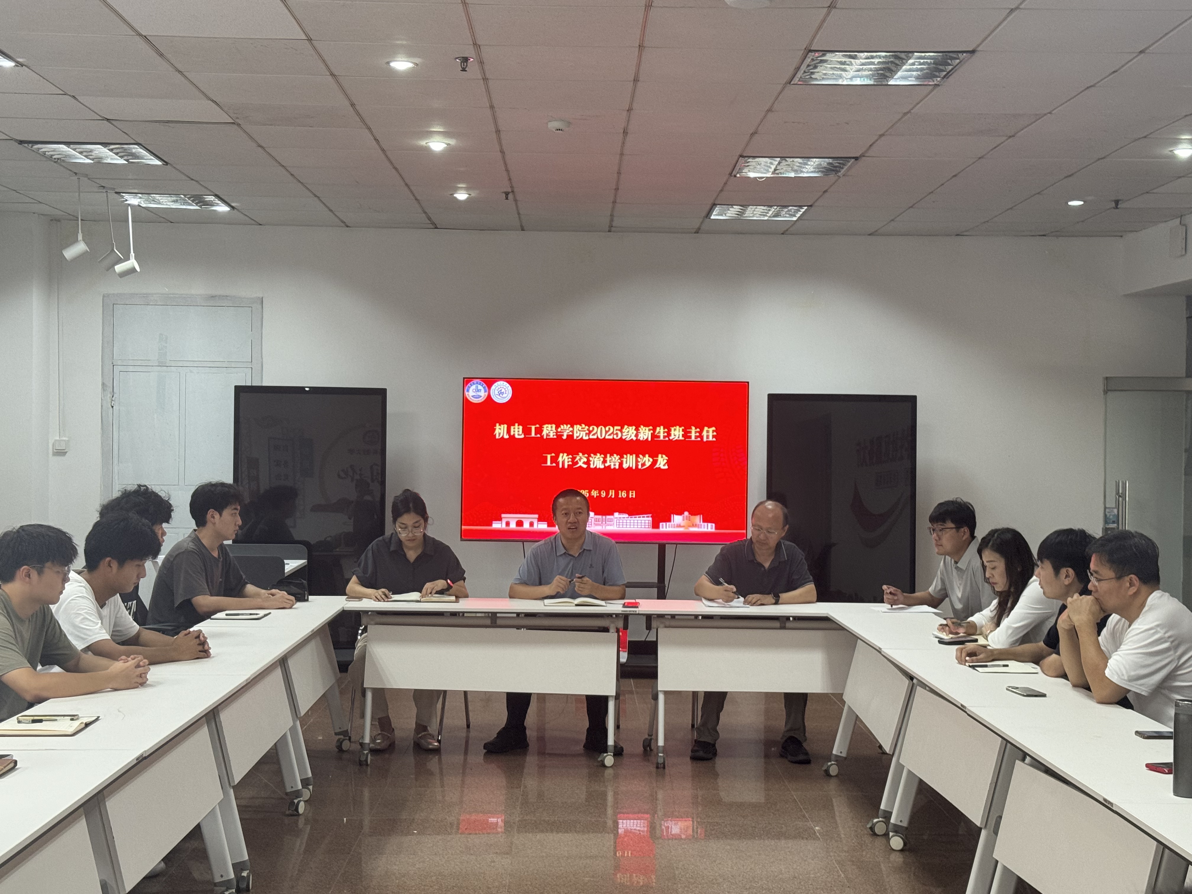 杨小明作总结发言。他指出,班主任是连接学院与学生的关键纽带,是学生成长路上的引路人和守护者,新生班级建设更是筑牢大学生涯根基的重要一环。他对2025级新生班主任提出三点希望:一要摸透学情,精准施策。班主任要全面掌握新生个体差异,避免“一刀切”管理,针对专业特点,引导新生树立学科思维。二要强化协同,形成合力。班主任要主动对接学院教学、学工等部门,善用校院等资源,为困难学生排忧解难,同时加强与家长的良性沟通,形成家校社育人共同体。三要着眼长远,助力成长。结合学院在机电、能动等优势学科领域的产业合作优势,鼓励新生完成学业的同时,多参与企业实习、学科竞赛、科研项目,助力新生实现专业学习与职业发展的紧密融合。